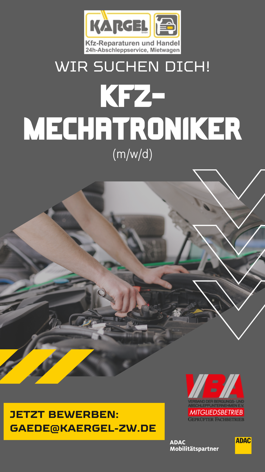 - Gerne eine abgeschlossene Kfz-Mechaniker oder Mechatroniker Ausbildung
